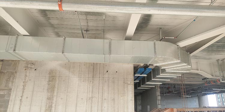 北京新光大工地風管安裝項目案例項目概況:通風風管的安裝涉及產品:矩形共板風管,保溫風管共板風管安裝效果